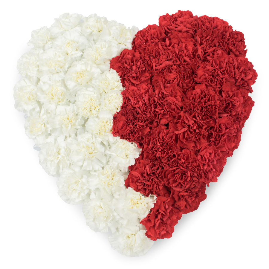 Our beautiful red and white carnation heart arrangement is a perfect blend of elegance and emotion. Featuring pristine white carnations alongside vibrant red ones, this bouquet is hand-selected to ensure each flower is fresh and radiant.